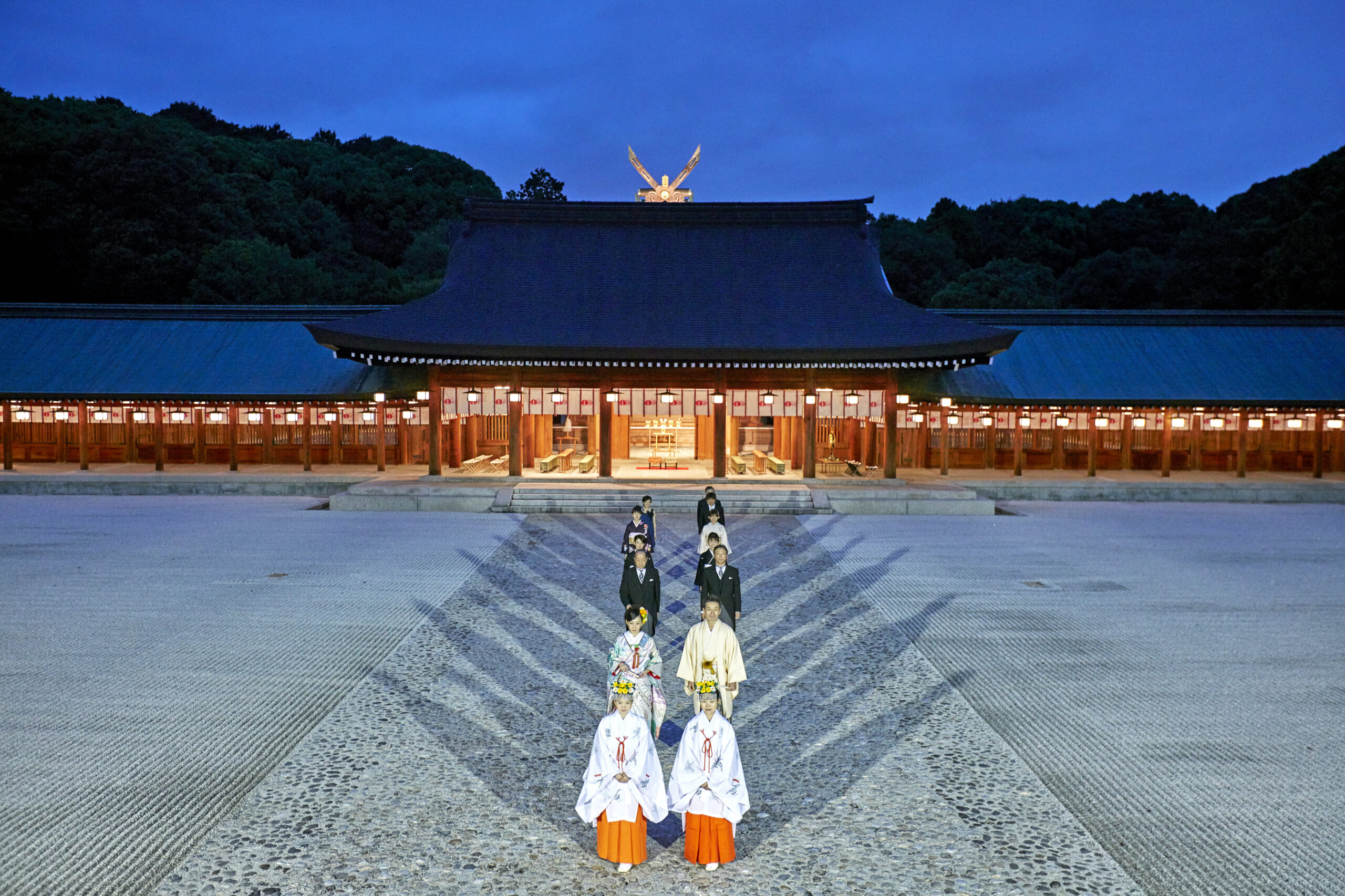 橿原神宮境内の燈籠が灯された幻想的な雰囲気の中で結婚式を。 養正殿会場食事会・披露宴プランと併用いただけます。 内拝殿挙式につきましては、衣裳・美……